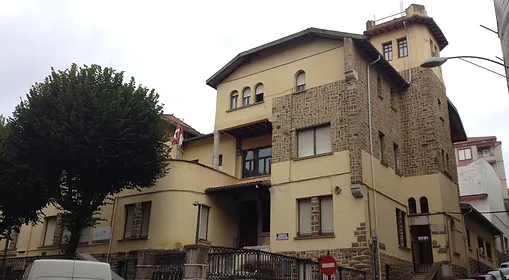 El arquitecto Anasagasti retornó a la opción de lo local una vez agotado el filón del modernismo. Su mirada del neovasco no es la usual de reproducir elementos singulares de las arquitecturas tradicionales, sino que va a entender su esencia, esto es, su razón constructiva. Esto se traduce en un edifico apaisado de factura limpia con grandes ventanales en conformidad con la función escolar, que remite a lo local a través de la mampostería vista, las cubiertas en cola de milano, los espolones y la disposición de un torreón angular.