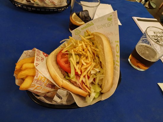 Bermeoko portu zaharrean kokatuta dagoen hanburgesategia, bistadun terrazarekin eta karta zabalarekin.